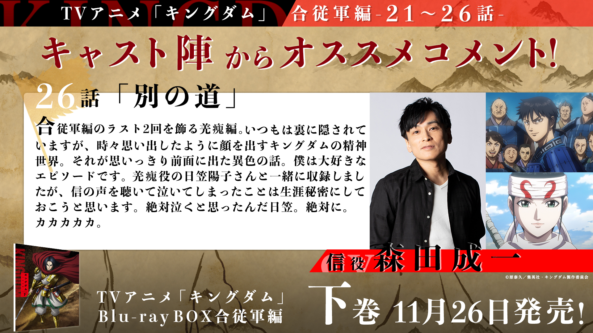 キングダム 合従軍編-キングダム 希望を、絶やすな―― 第3シリーズ (1)「迫り来る合従軍」 初回放送日 年4月6日 紀元前の中国・秦。下僕出身の身ながら"天下の大将軍"を目指す信は、武功を重ね、千人の部下を抱える"千人将"となっていた。 春秋・戦国時代を舞台にした漫画『キングダム』。 50巻を超えて物語はさらに面白く、複雑になってきました。 25〜30巻 合従軍侵攻編 キングダム(25) 武力と